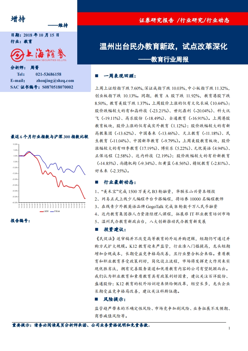 教育行业周报:温州出台民办教育新政,试点改革深化