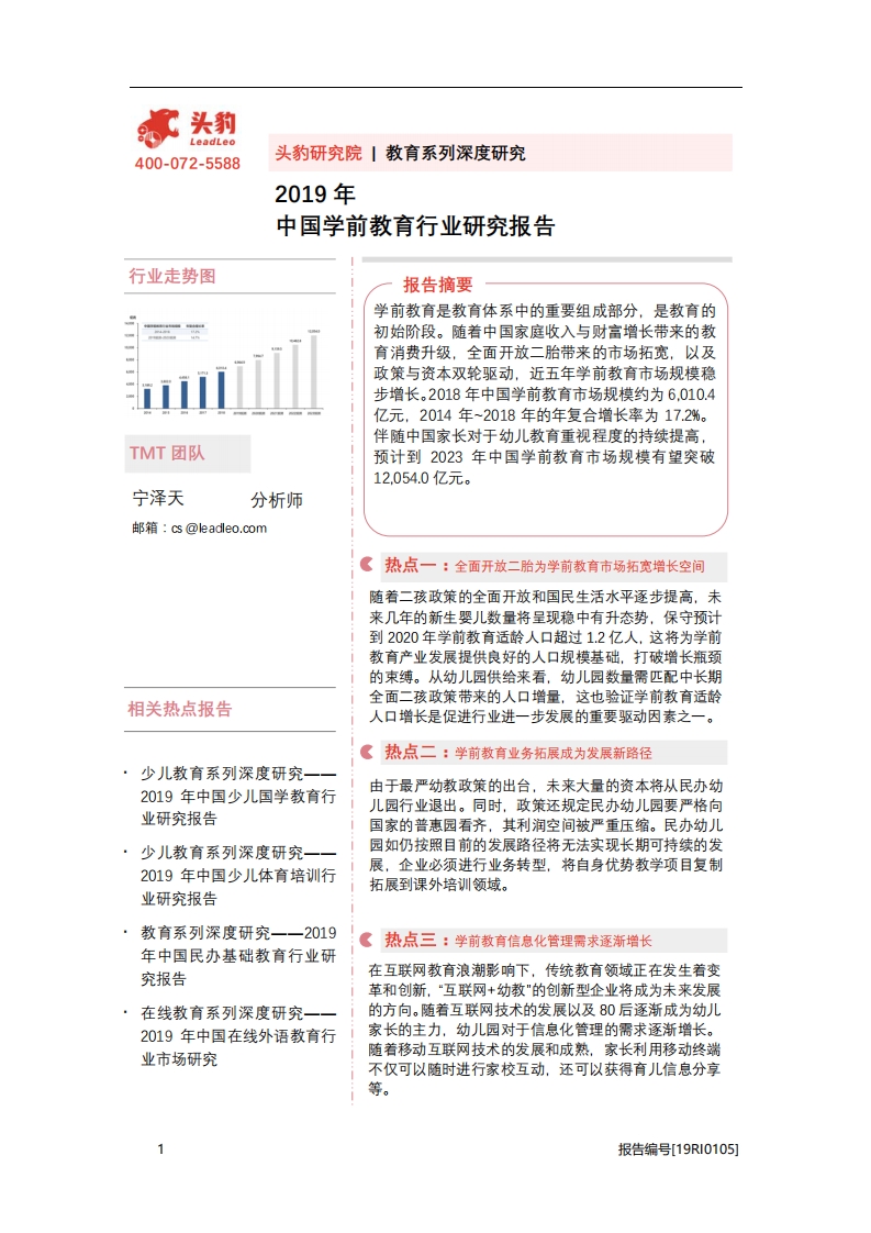 2019年中国学前教育行业研究报告