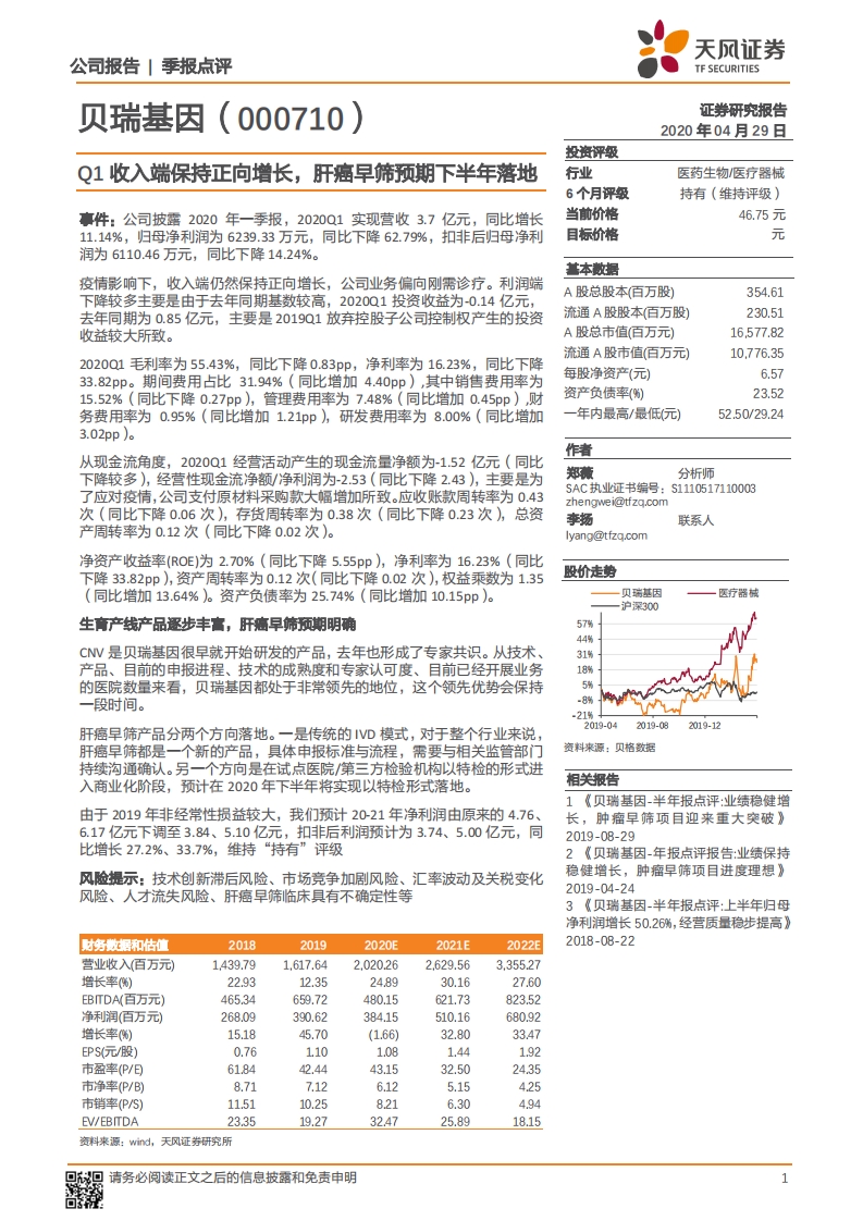 2020-04-29-天风证券-贝瑞基因-Q1收入端保持正向增长,肝癌早筛预期下半年落地