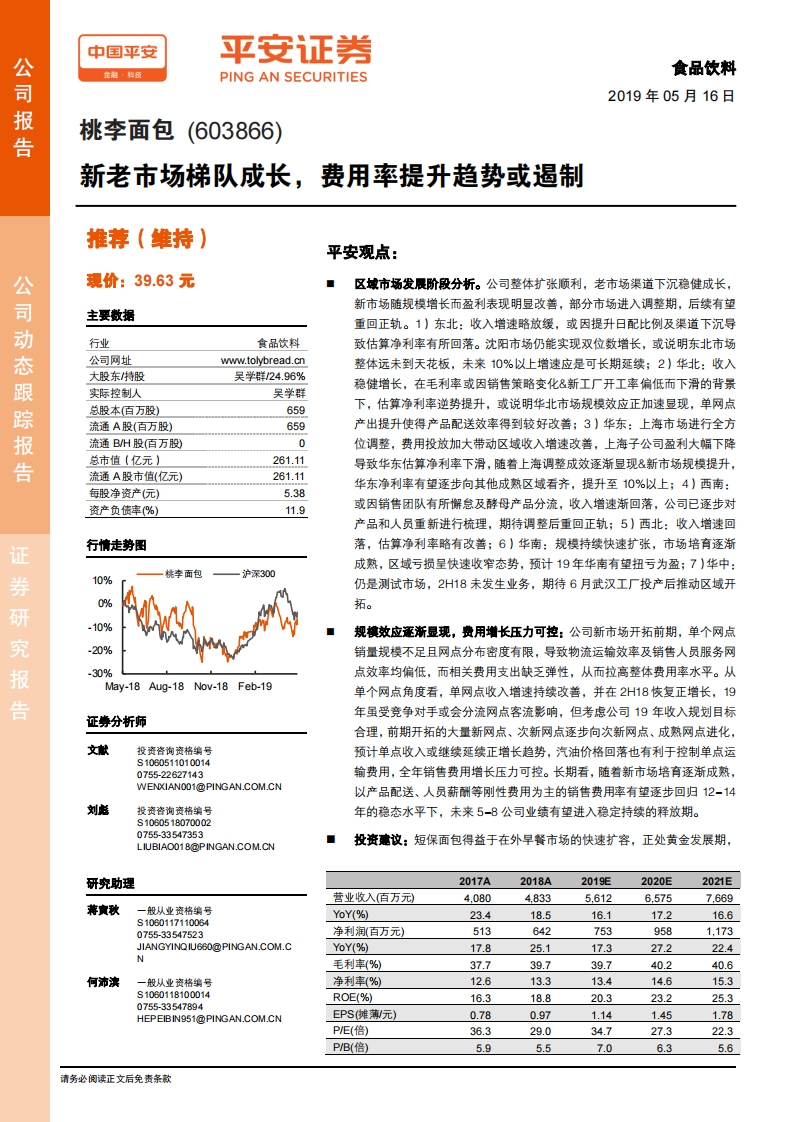 2019-05-16-平安证券-桃李面包-新老市场梯队成长,费用率提升趋势或遏制