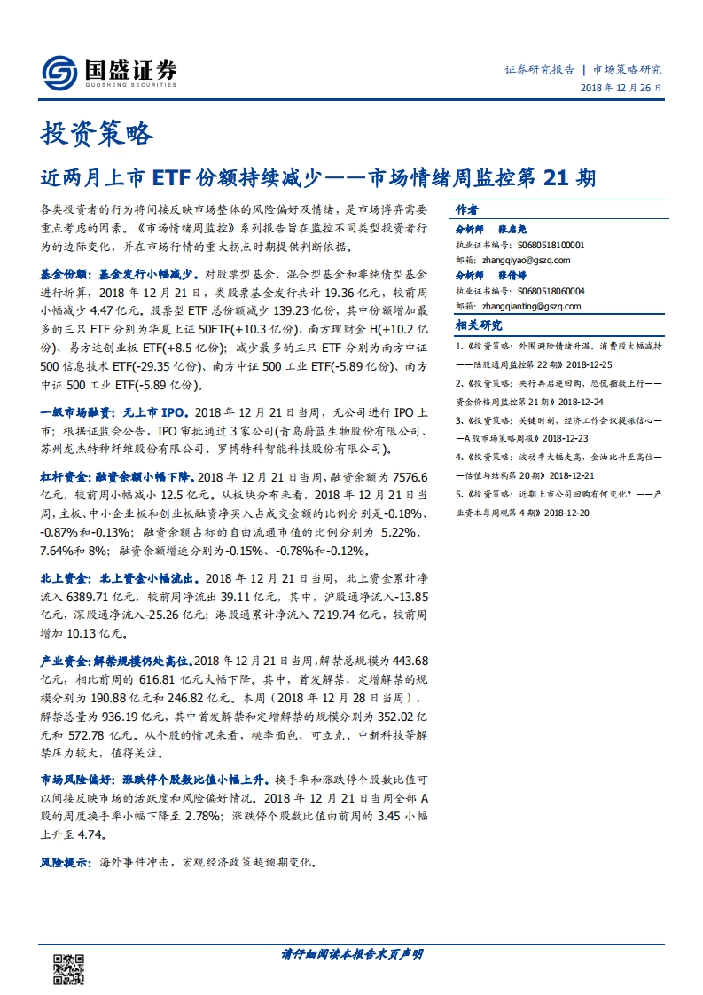 20181226-国盛证券:市场情绪周监控第21期-近两月上市ETF份额持续减少-9页