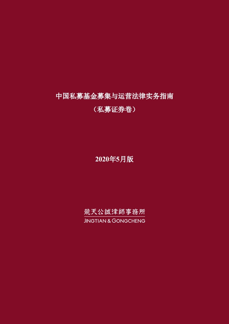 中国私募基金募集与运营法律实务指南(私募证券卷)2020年5月版