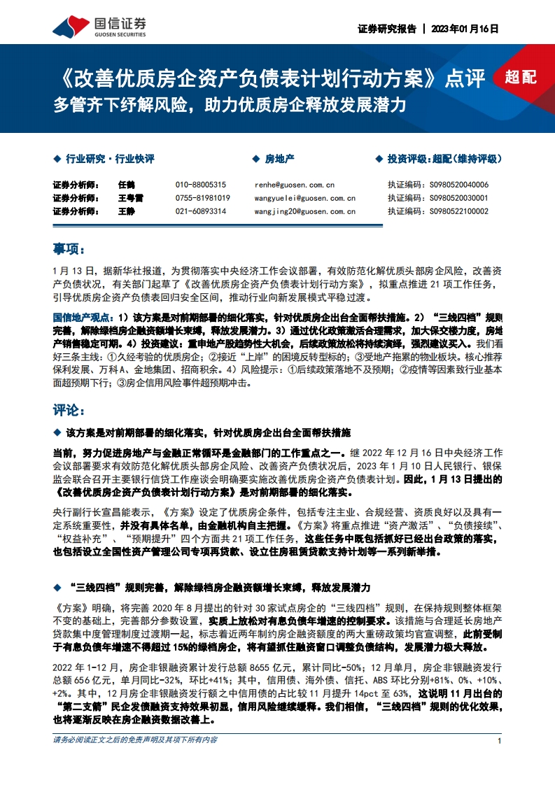 2023-01-16-国信证券--房地产:《改善优质房企资产负债表计划行动方案》点评-多管齐下纾解风险,助力优质房企释放发展潜力