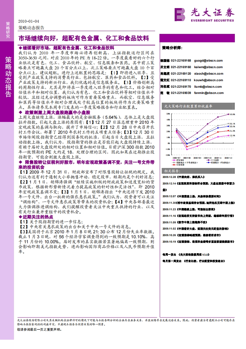 20091228-光大证券:策略动态报告-市场继续向好,超配有色金属、化工和食品饮料-15页