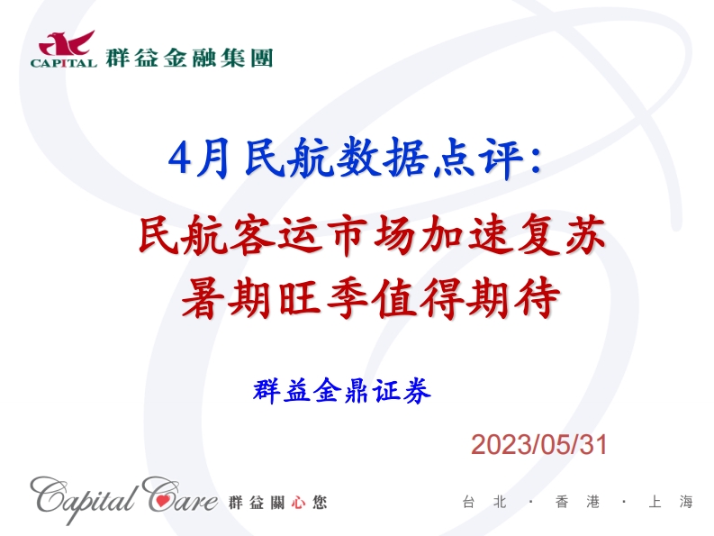 2023-05-31-群益证券--4月民航数据点评:民航客运市场加速复苏 暑期旺季值得期待