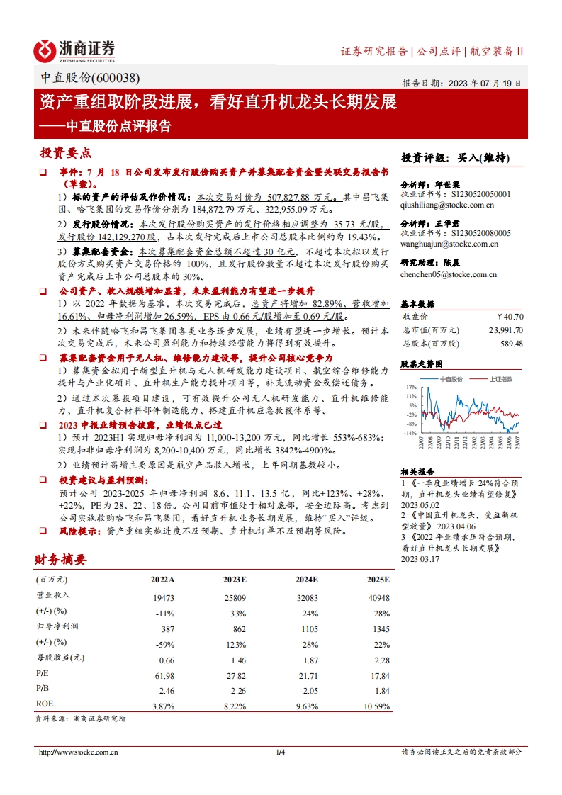 2023-07-19-浙商证券-中直股份-中直股份点评报告:资产重组取阶段进展,看好直升机龙头长期发展
