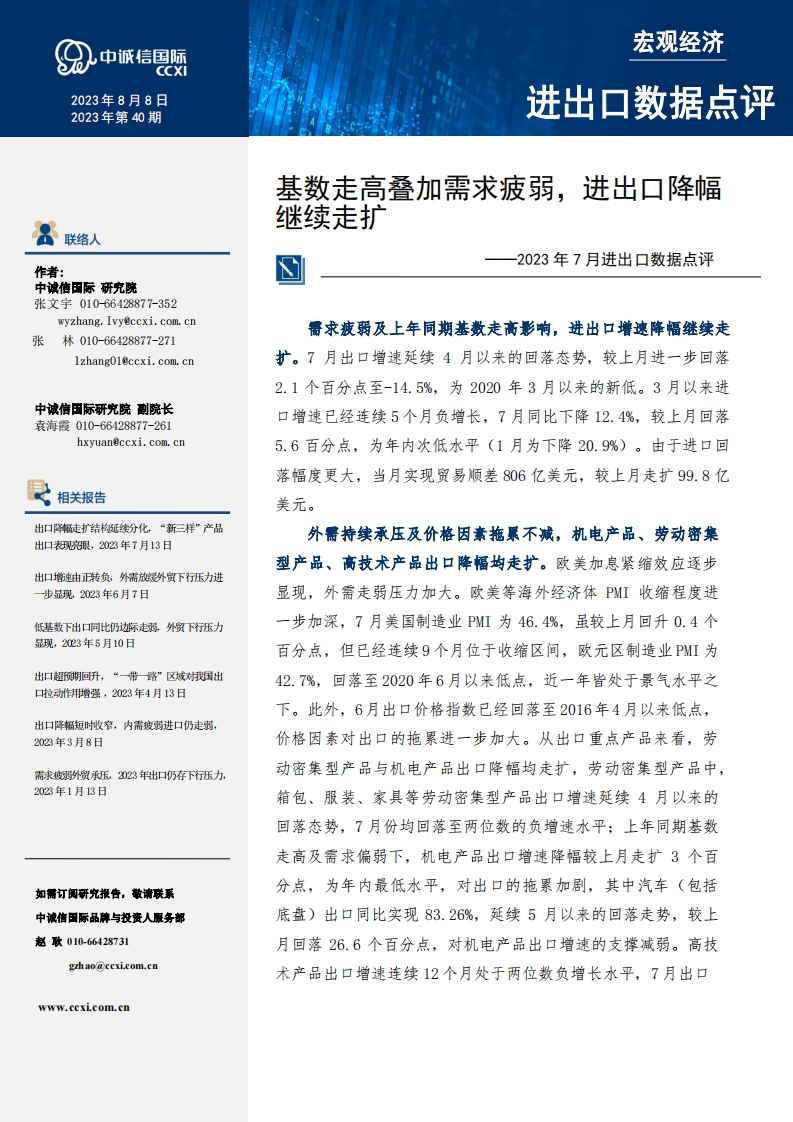 2023-08-16-中诚信国际-2023年7月进出口数据点评:基数走高叠加需求疲弱,进出口降幅继续走扩