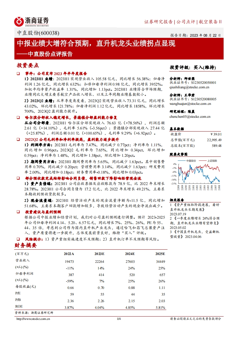 2023-08-23-浙商证券-中直股份-中直股份点评报告:中报业绩大增符合预期,直升机龙头业绩拐点显现