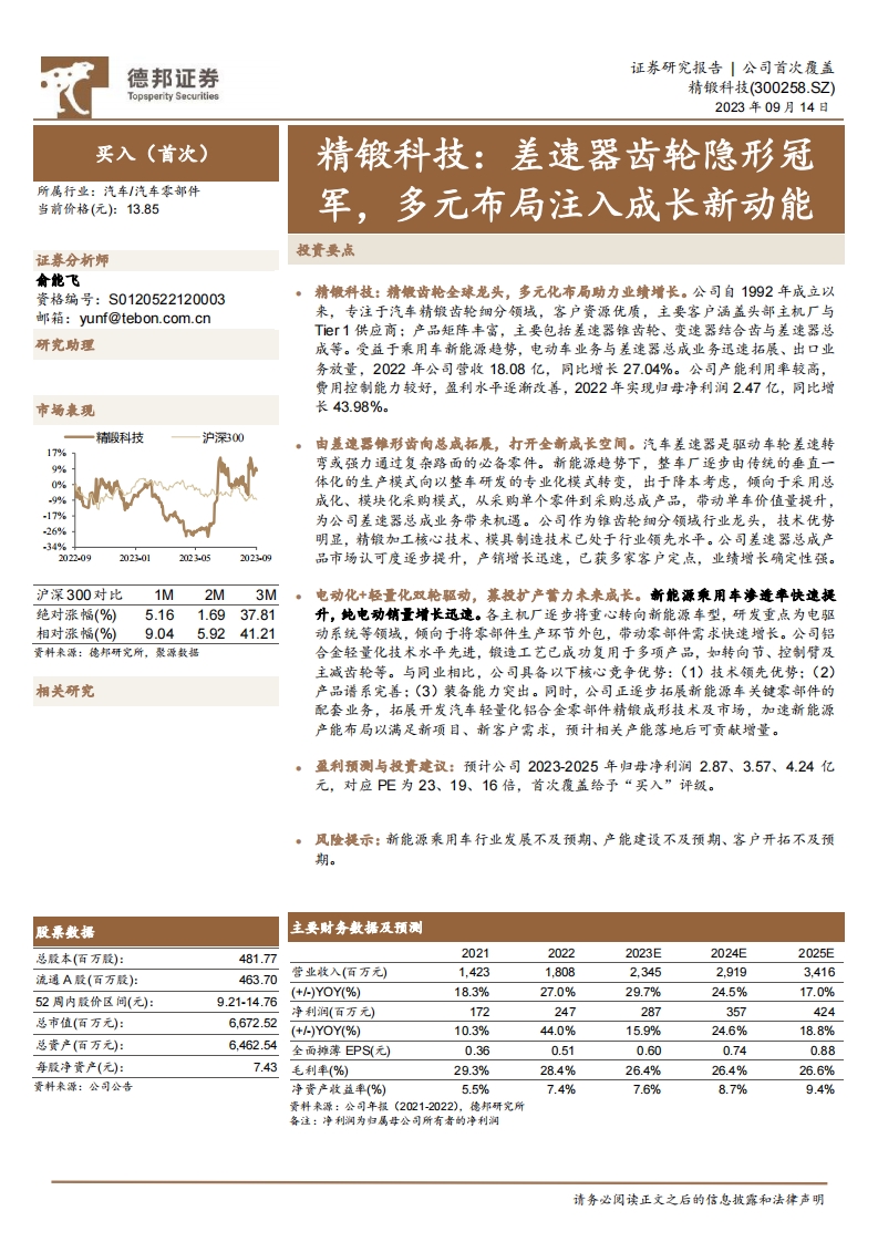 2023-09-15-德邦证券-精锻科技-精锻科技:差速器齿轮隐形冠军,多元布局注入成长新动能