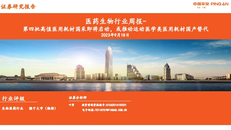2023-09-18-平安证券--医药生物行业周报:第四批高值医用耗材国采即将启动,或推动运动医学类医用耗材国产替代