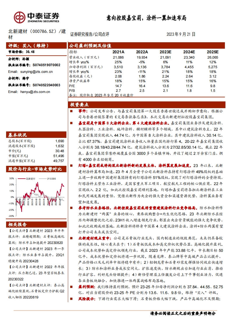 2023-09-21-中泰证券-北新建材-意向控股嘉宝莉,涂料一翼加速布局