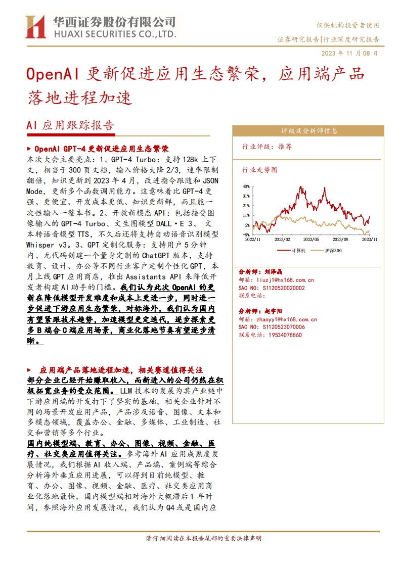 2023-11-09-华西证券--AI应用跟踪报告:OpenAI更新促进应用生态繁荣,应用端产品落地进程加速