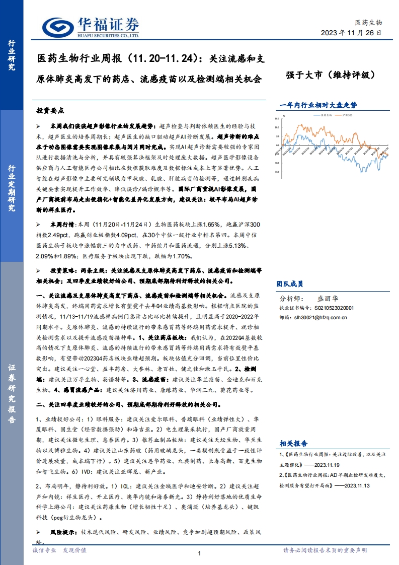 2023-11-27-华福证券--医药生物行业周报:关注流感和支原体肺炎高发下的药店、流感疫苗以及检测端相关机会