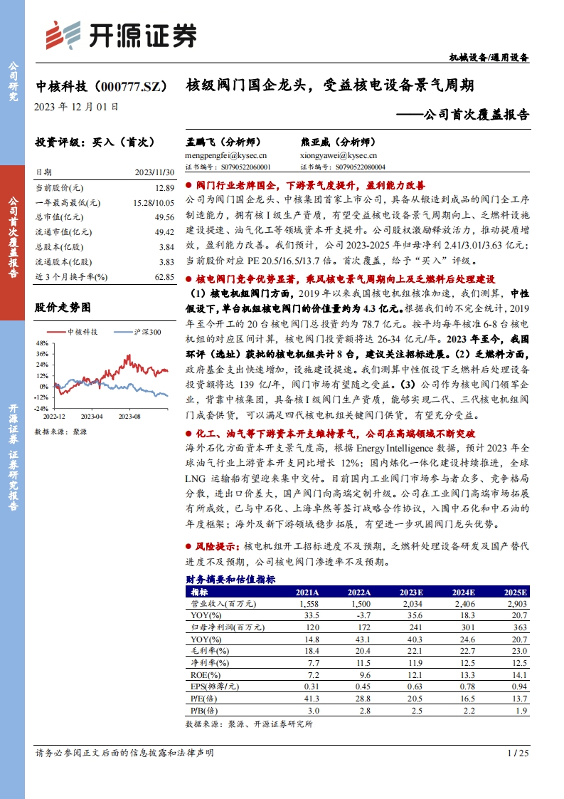 2023-12-01-开源证券-中核科技-公司首次覆盖报告:核级阀门国企龙头,受益核电设备景气周期