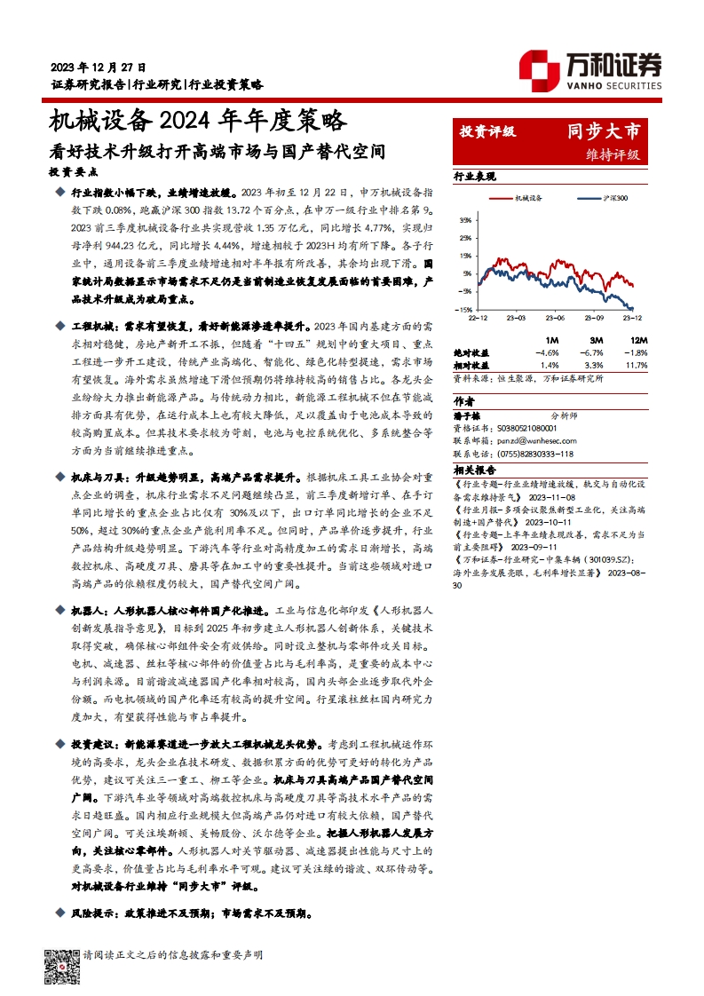2023-12-27-万和证券--机械设备2024年年度策略:看好技术升级打开高端市场与国产替代空间