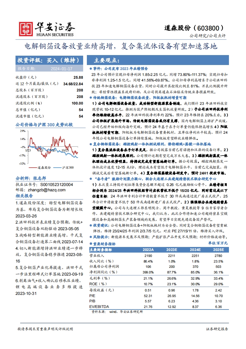 2024-01-17-华安证券-道森股份-电解铜箔设备放量业绩高增,复合集流体设备有望加速落地