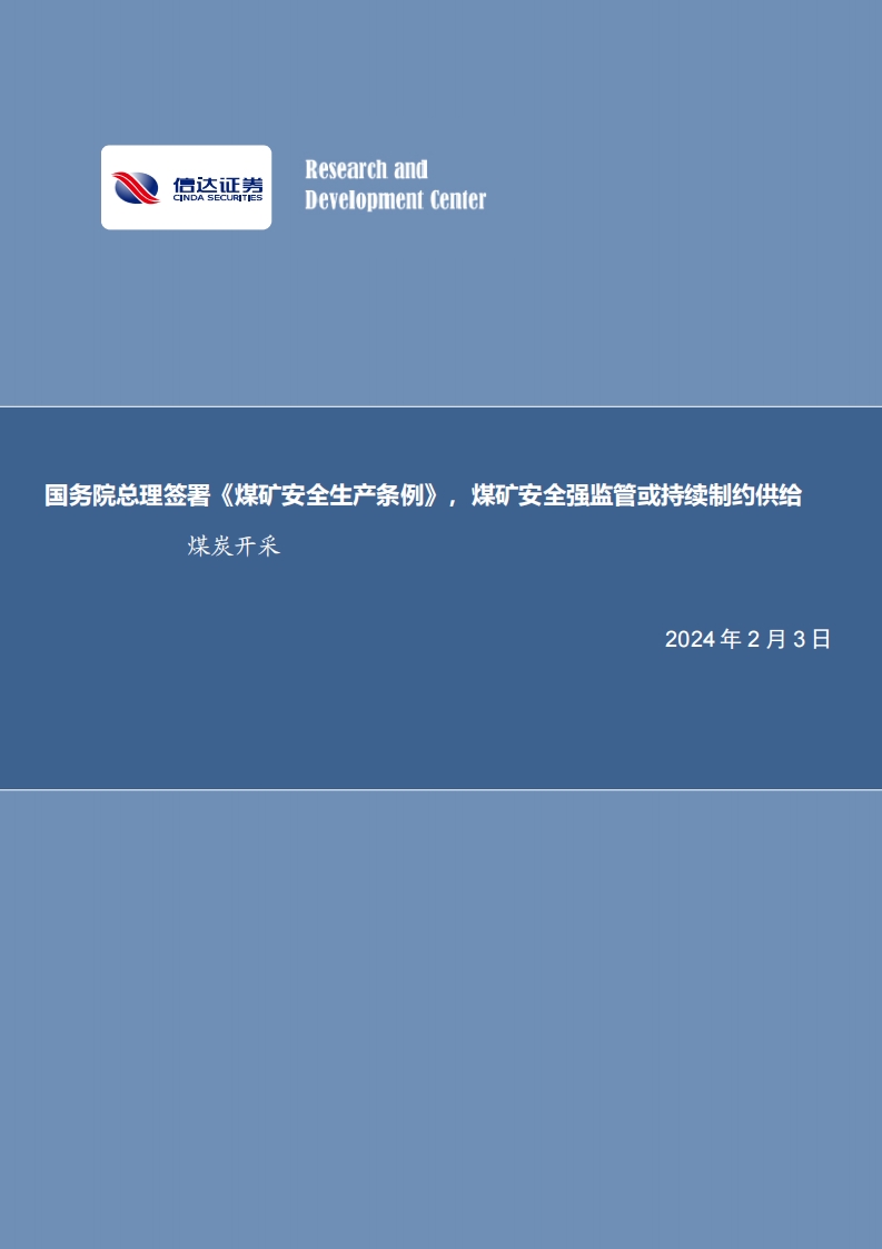 2024-02-03-信达证券--国务院总理签署《煤矿安全生产条例》,煤矿安全强监管或持续制约供给煤炭开采