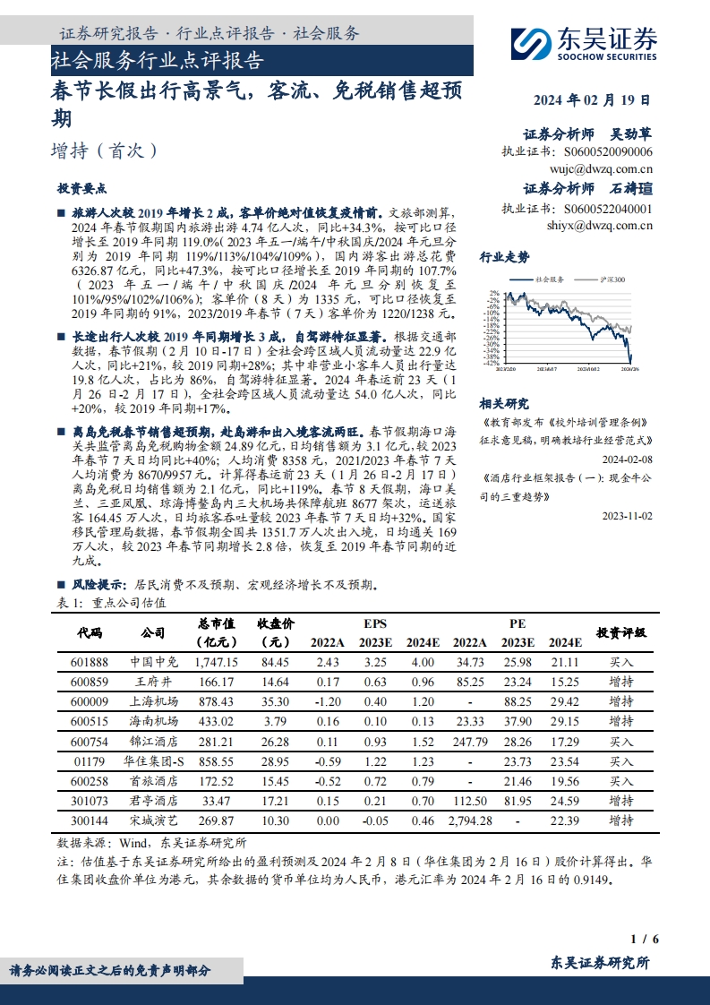 2024-02-19-东吴证券--社会服务行业点评报告:春节长假出行高景气,客流、免税销售超预期