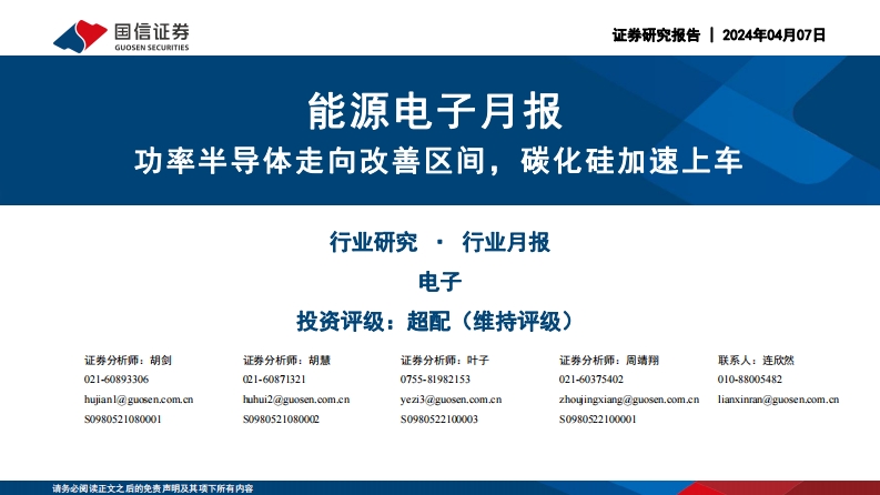 2024-04-08-国信证券--能源电子月报:功率半导体走向改善区间,碳化硅加速上车