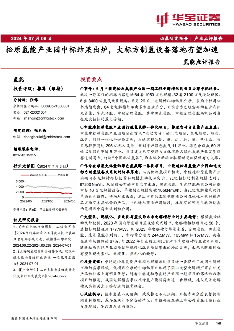 2024-07-09-华宝证券--氢能点评报告:松原氢能产业园中标结果出炉,大标方制氢设备落地有望加速