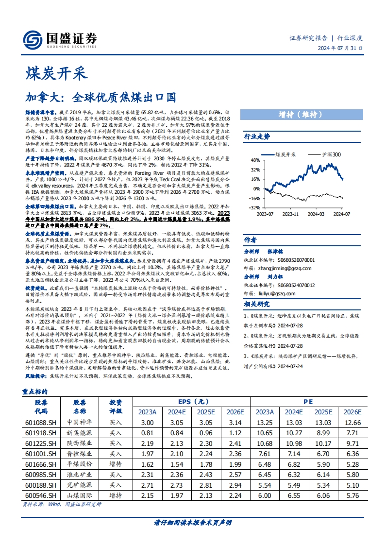 煤炭开采行业深度:加拿大:全球优质焦煤出口国