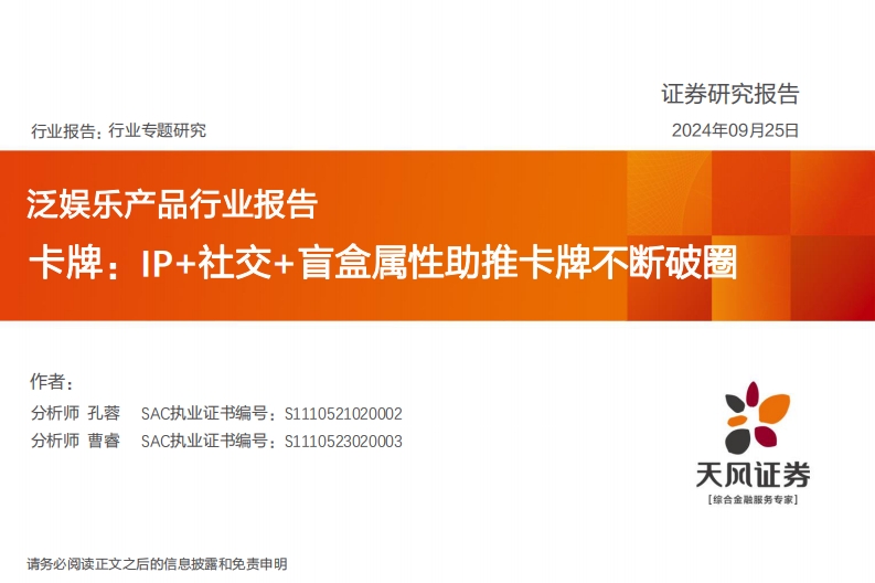 2024-09-25-天风证券--泛娱乐产品行业报告:卡牌:IP+社交+盲盒属性助推卡牌不断破圈