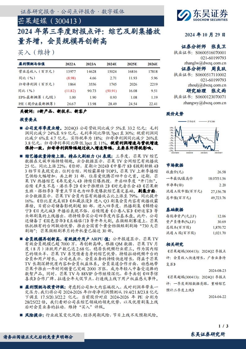 2024-10-29-东吴证券-芒果超媒-2024年第三季度财报点评:综艺及剧集播放量齐增,会员规模再创新高