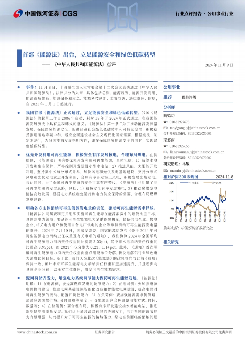 2024-11-10-中国银河-公用事业行业:《中华人民共和国能源法》点评-首部《能源法》出台,立足能源安全和绿色低碳转型