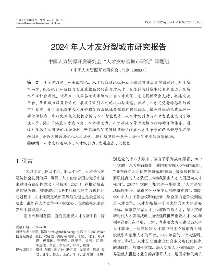 中国人力资源开发研究会:2024年人才友好型城市研究报告