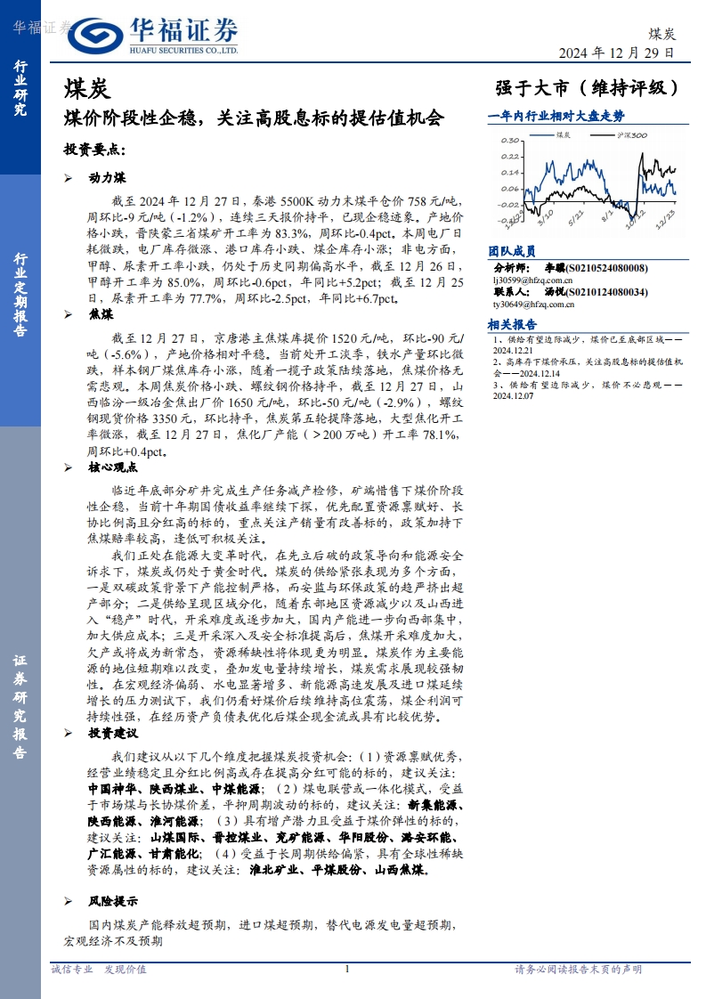 2024-12-30-华福证券--煤炭行业定期报告:煤价阶段性企稳,关注高股息标的提估值机会