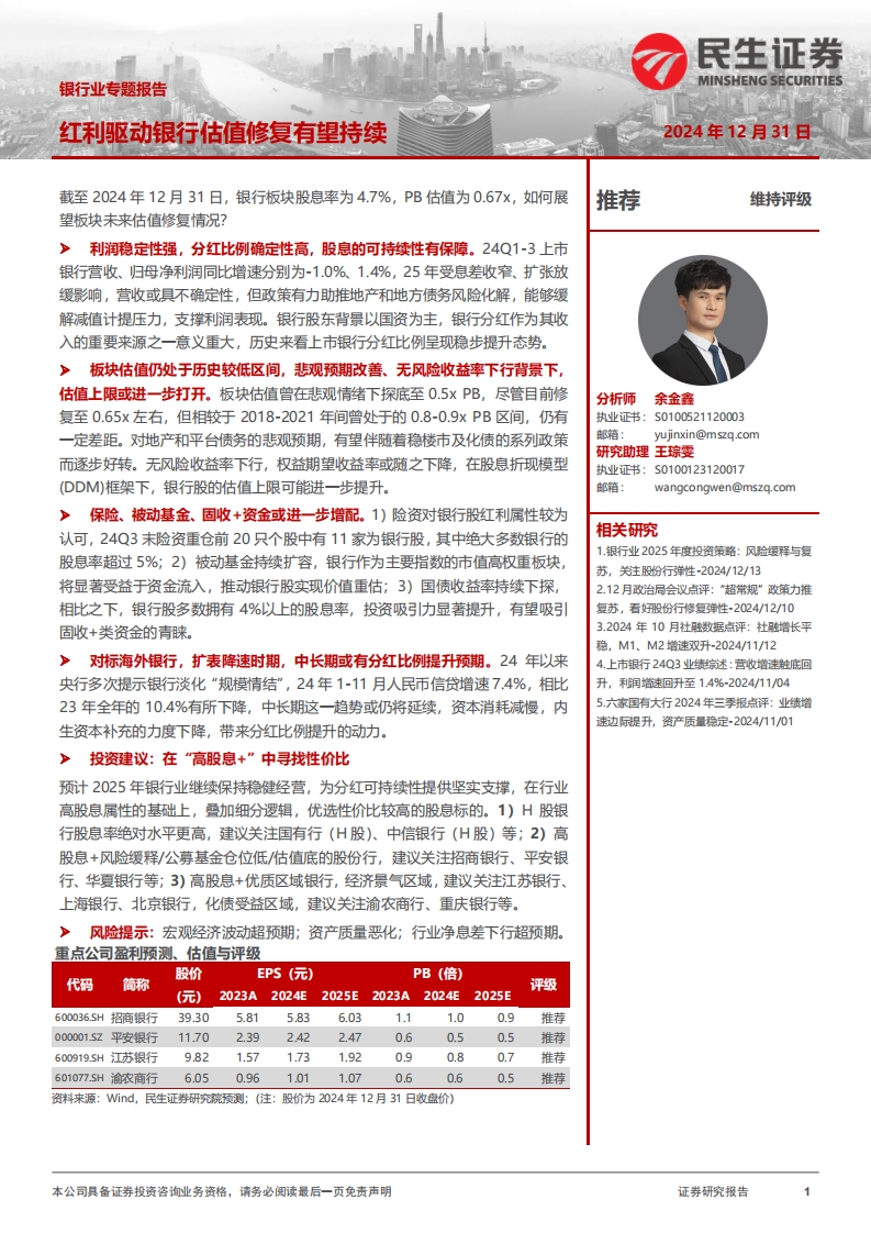 2025-01-01-民生证券-银行业行业专题:红利驱动银行估值修复有望持续