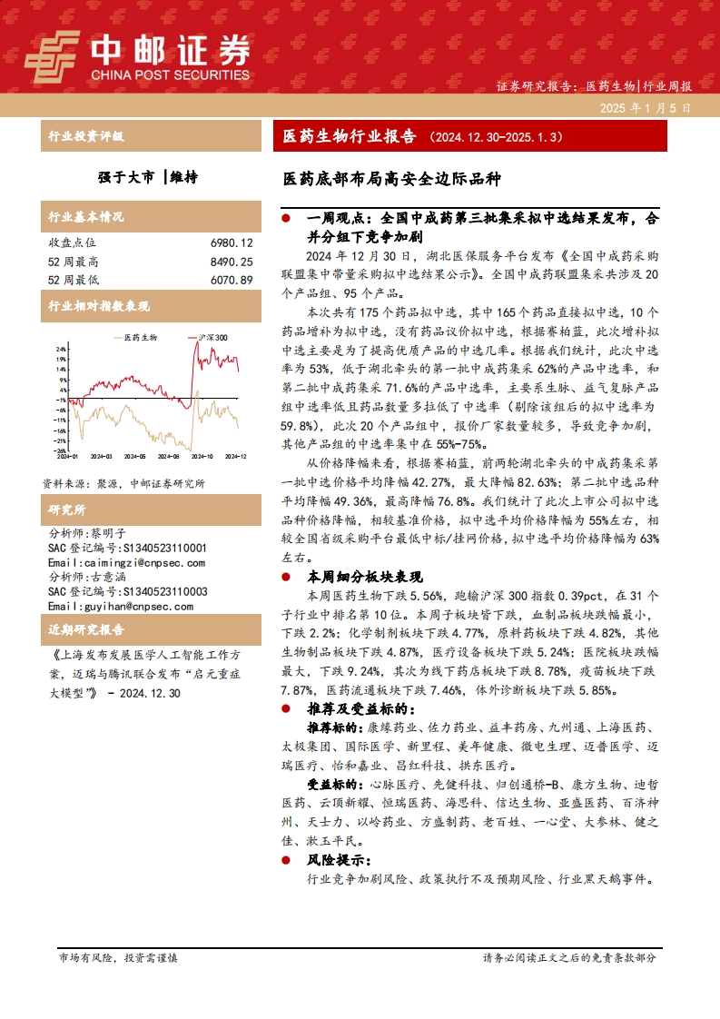 2025-01-06-中邮证券--医药生物行业报告:医药底部布局高安全边际品种