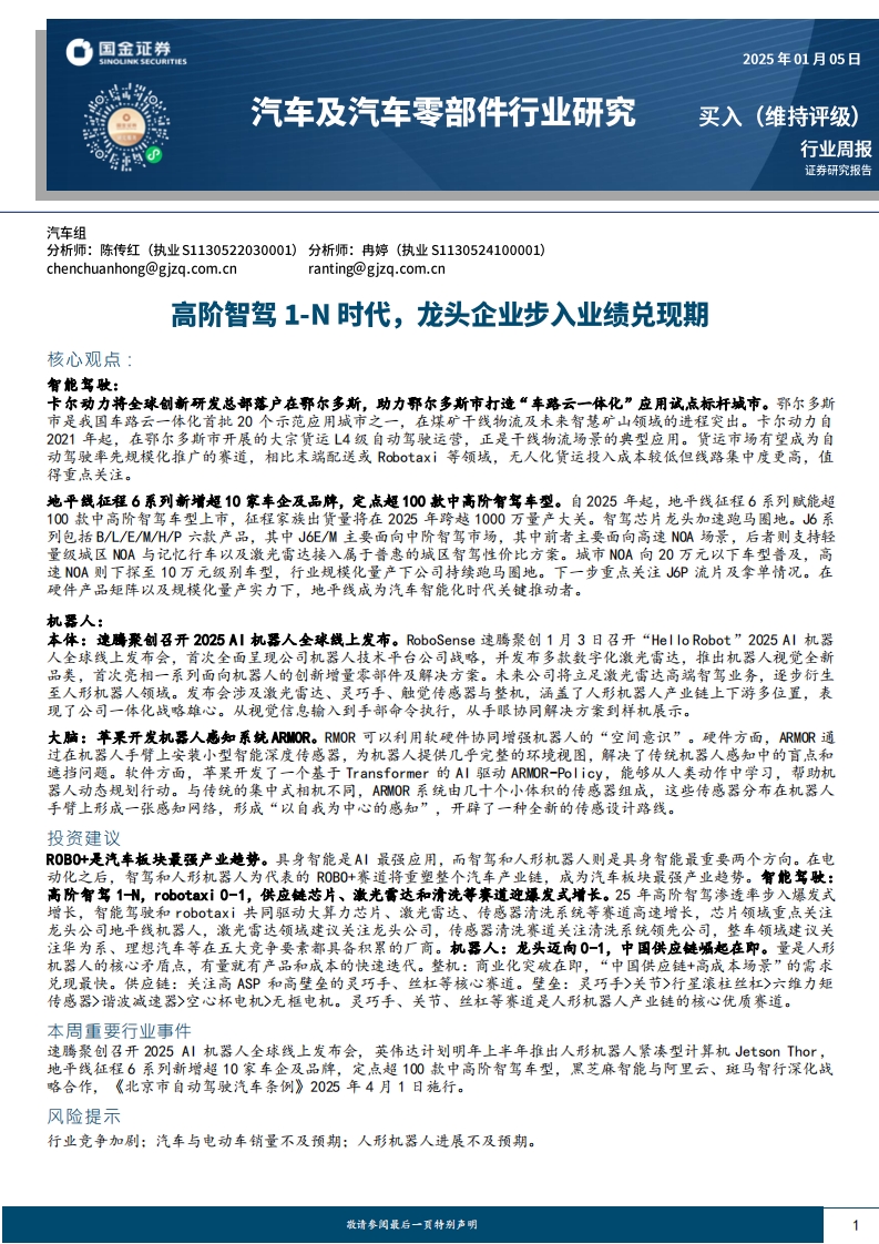 2025-01-05-国金证券--汽车及汽车零部件行业周报:高阶智驾1~N时代,龙头企业步入业绩兑现期