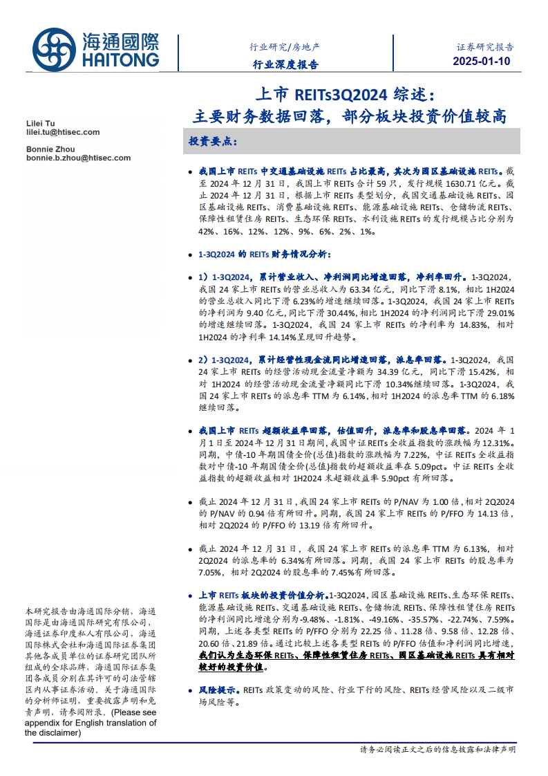 2025-01-10-海通国际-房地产行业深度报告:上市REITs3Q2024综述:主要财务数据回落,部分板块投资价值较高
