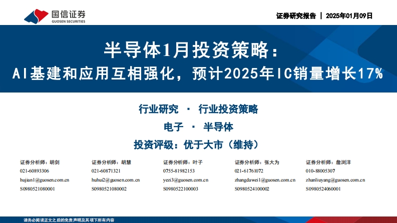 2025-01-09-国信证券--半导体1月投资策略:AI基建和应用互相强化,预计2025年IC销量增长17%