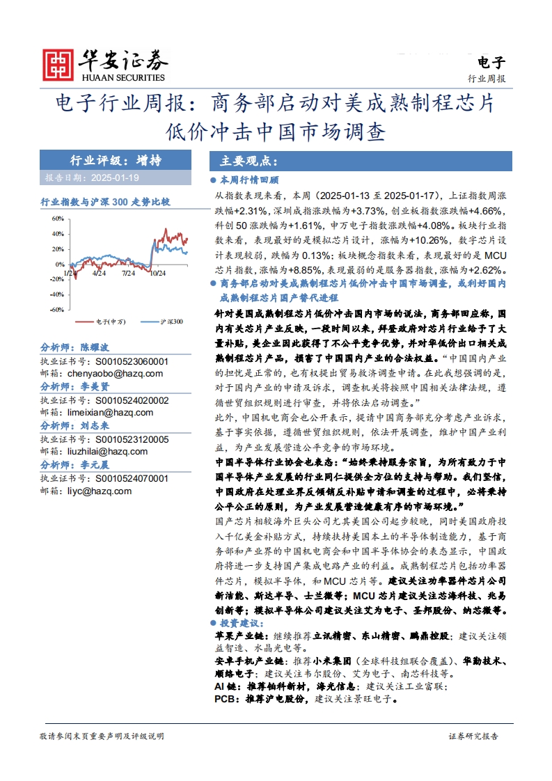 2025-01-20-华安证券-电子行业周报:商务部启动对美成熟制程芯片低价冲击中国市场调查