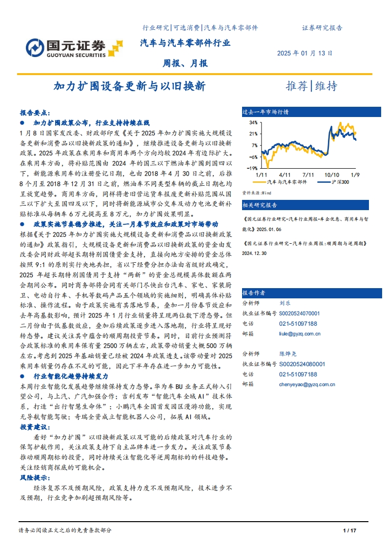 2025-01-13-国元证券--汽车与汽车零部件行业周报:加力扩围设备更新与以旧换新
