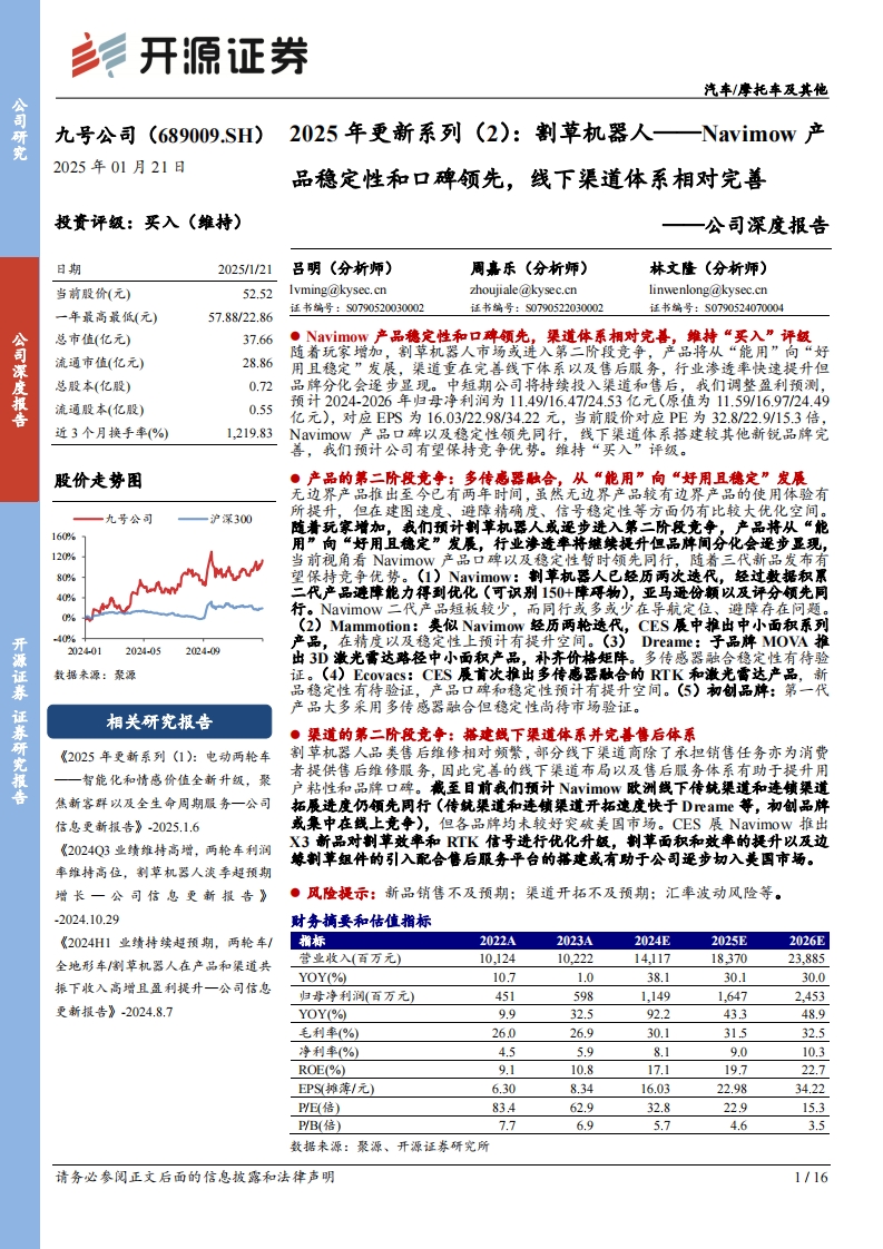 2025-01-21-开源证券-九号公司-公司深度报告:2025年更新系列(2):割草机器人——Navimow产品稳定性和口碑领先,线下渠道体系相对完善