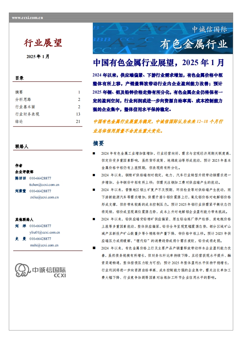 2025-01-24-中诚信国际-中国有色金属行业展望,2025年1月
