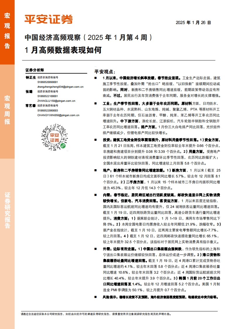 2025-01-26-平安证券-中国经济高频观察(2025年1月第4周):1月高频数据表现如何