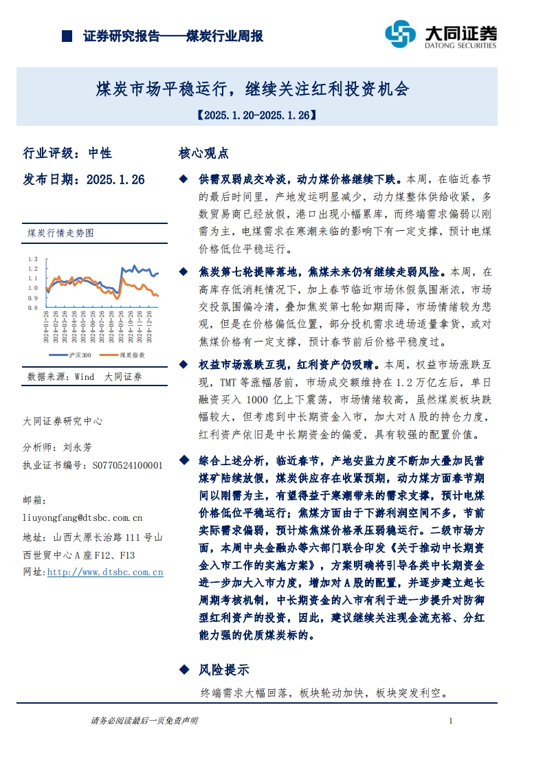 2025-01-27-大同证券--煤炭行业周报:煤炭市场平稳运行,继续关注红利投资机会