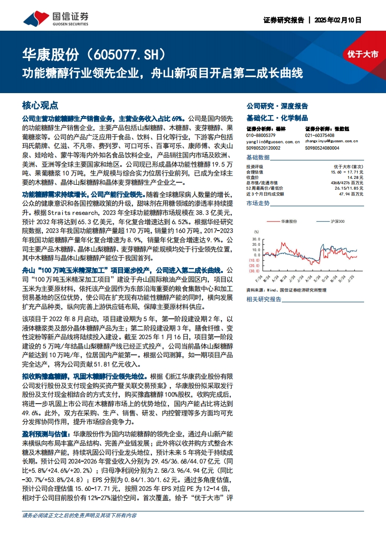 2025-02-10-国信证券-华康股份-功能糖醇行业领先企业,舟山新项目开启第二成长曲线