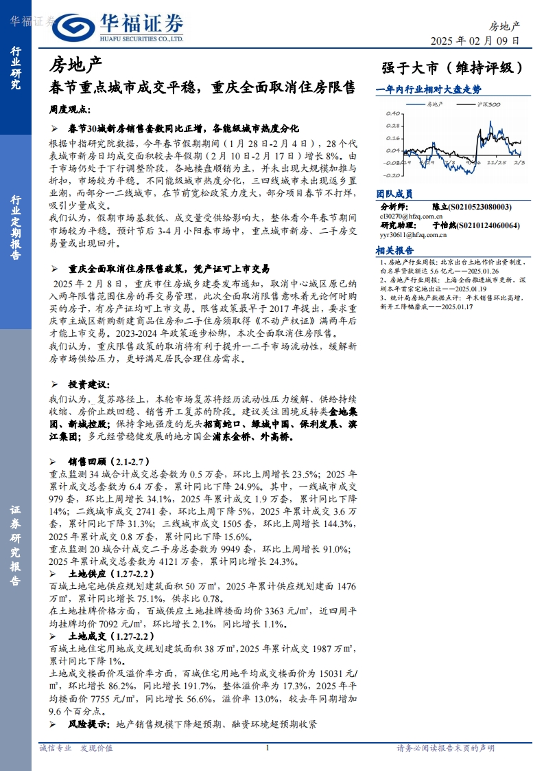2025-02-09-华福证券--房地产行业定期报告:春节重点城市成交平稳,重庆全面取消住房限售