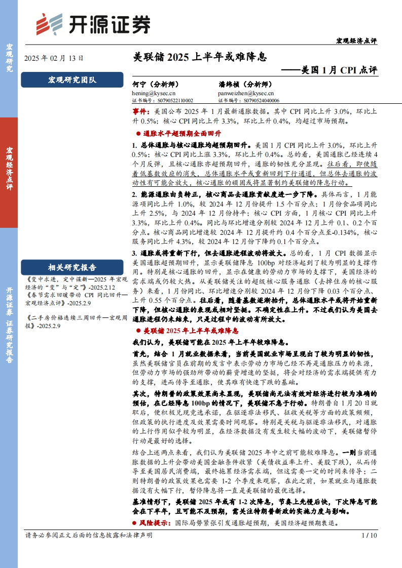 2025-02-13-开源证券-美国1月CPI点评:美联储2025上半年或难降息