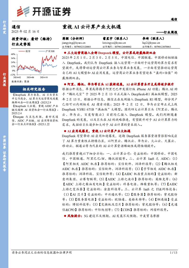 2025-02-16-开源证券--通信行业周报:重视AI云计算产业大机遇