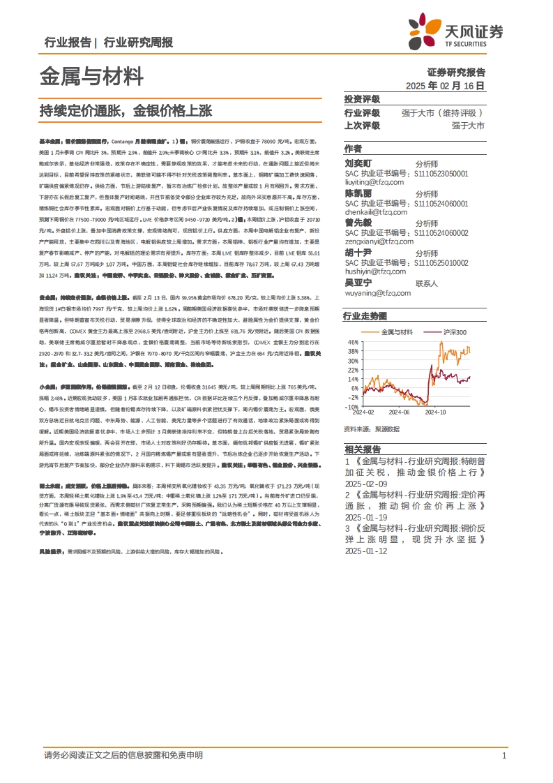 2025-02-16-天风证券--金属与材料行业研究周报:持续定价通胀,金银价格上涨