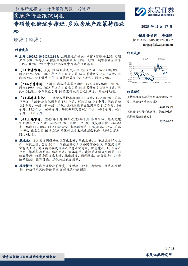 2025-02-17-东吴证券-房地产行业跟踪周报:专项债收储逐步推进,多地房地产政策持续放松