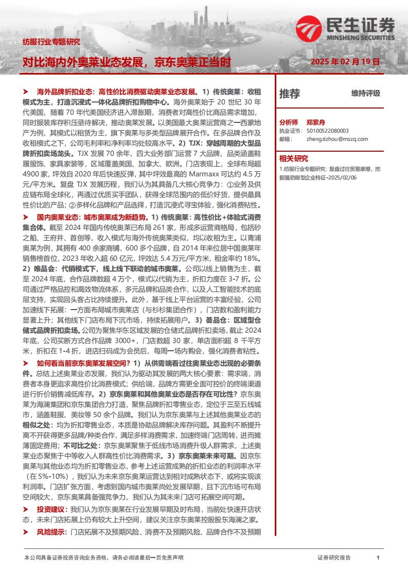 2025-02-20-民生证券--纺服行业专题研究:对比海内外奥莱业态发展,京东奥莱正当时