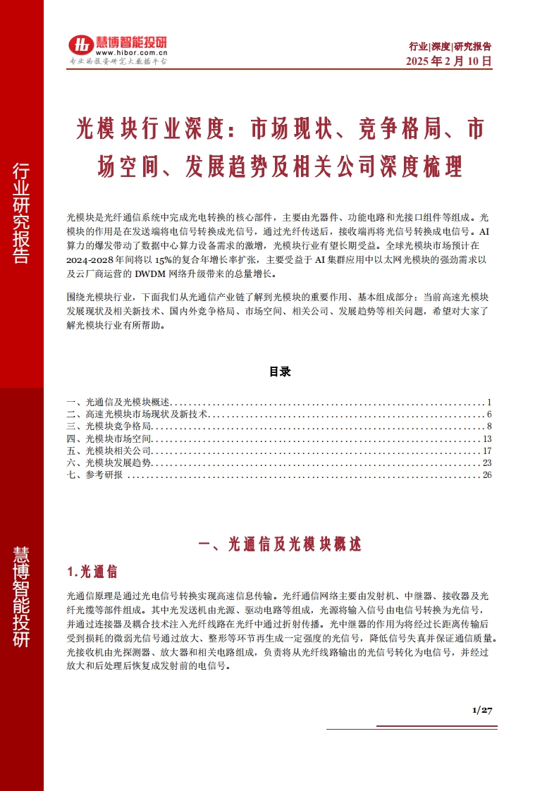 光模块行业深度:市场现状、竞争格局、市场空间、发展趋势及相关公司深度梳理