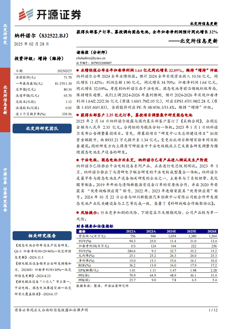 2025-02-28-开源证券-纳科诺尔-北交所信息更新:获得头部客户订单、募投调向固态电池,全年归母净利润预计同比增长32%